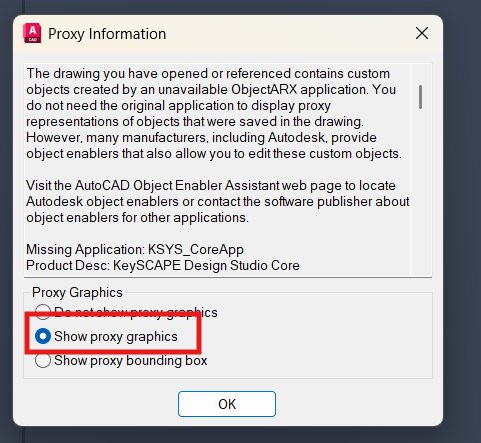 - When the Proxy Information prompt appears. click Show Proxy Graphics.