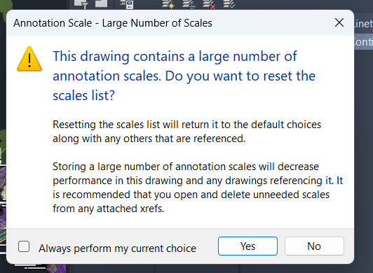 - Next, when the Annotation Sale prompt appears to reset the scale to click No.