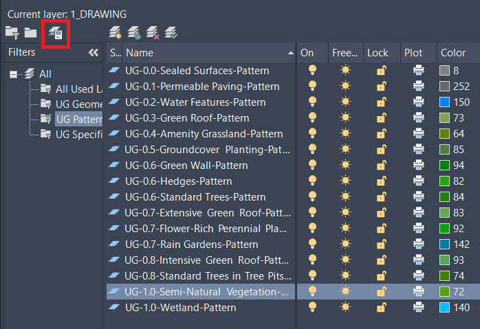 - Open the Layer Properties Manager and open the Layer States Manager.