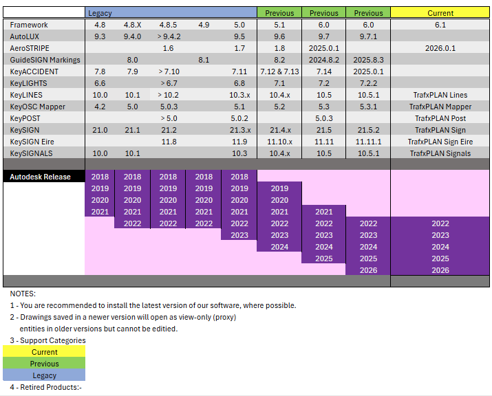Transoft UK Software Traffic Framework Product Compatibility Matrix