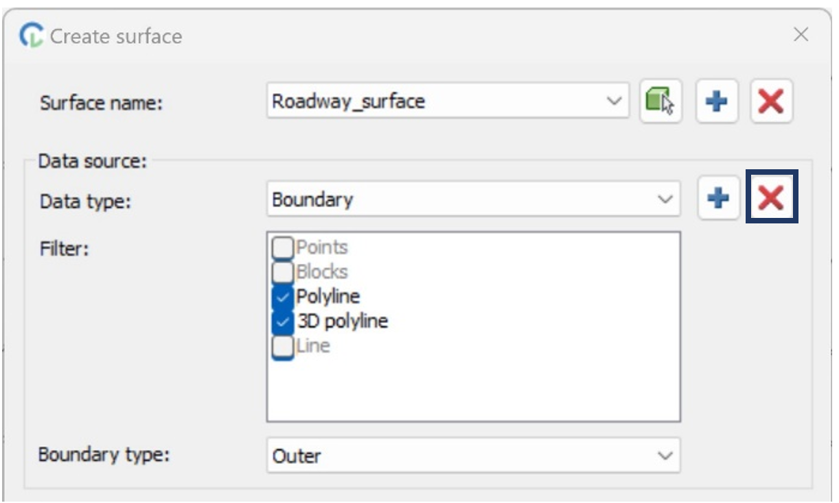 Click the cross button. Next, select the boundary directly in the drawing, and press Enter.
