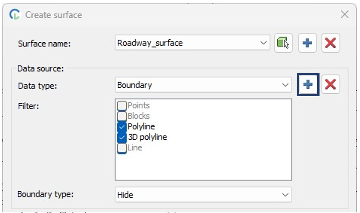 Then click the plus button. Next, select the boundary directly in the drawing, and press Enter.