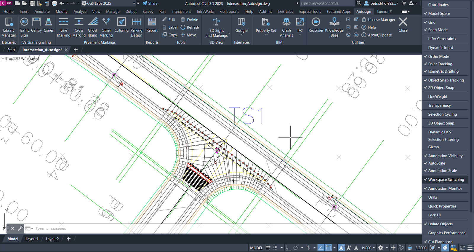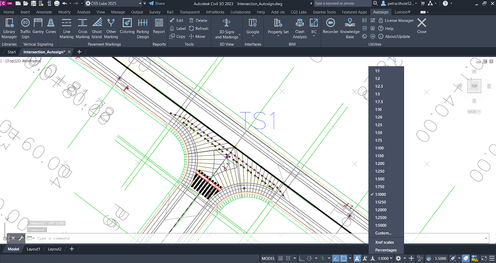 When we insert a traffic sign into the drawing using the "Traffic signs" command, by default, in Civil 3D and BricsCAD, the scale is set to 1:1000.