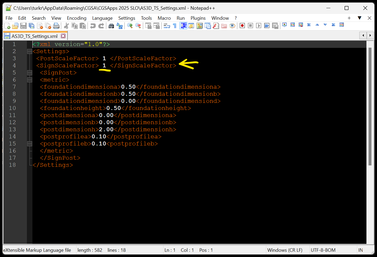 - Open it (xml or text editor) and edit the SignScaleFactor tag, change this value to the one that suits you