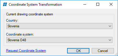 User can request a new coordinate system (if not available in the current list) by clicking the button »Request coordinate system«.