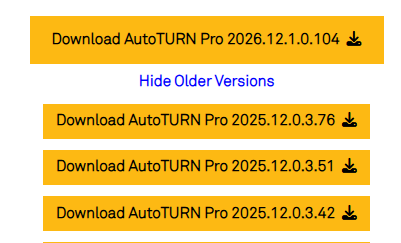 You can find download link and CD Key for older versions of software like AutoTURN, in My Transoft Portal, under Home -> Download Products. Click on Download on the license and then select Download Older Versions