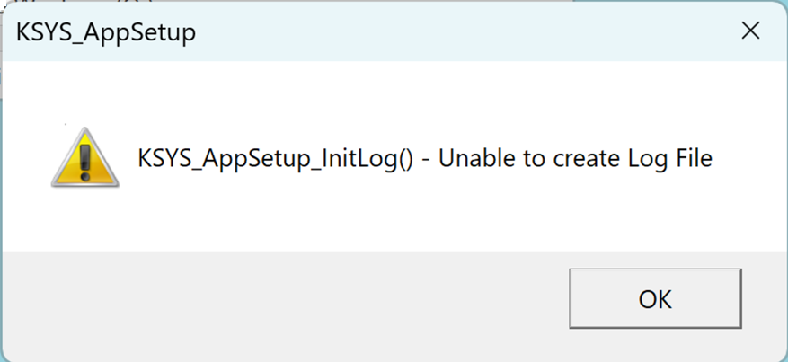 KSYS_AppSetup_InitLog() - Unable to create Log File