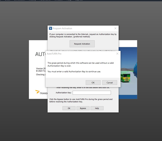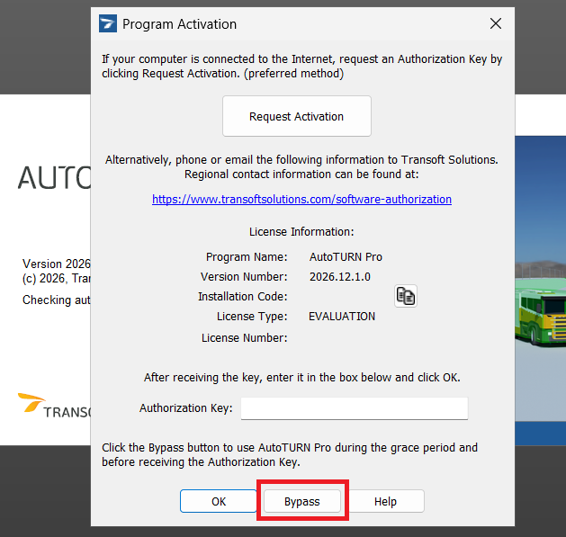 8. When Program Authorization dialog box is displayed prompting for the Authorization Key, please click Bypass to start the software in Evaluation mode.