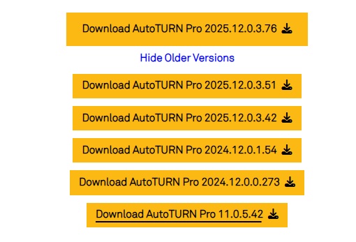 Una vez que haga clic, aparecerá una ventana emergente donde podrá encontrar el enlace de descarga y la clave de CD para la instalación. Por ejemplo, puede descargar AutoTURN 11 haciendo clic en dicha versión.